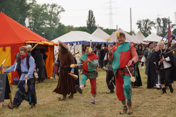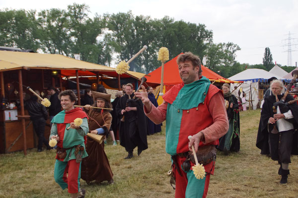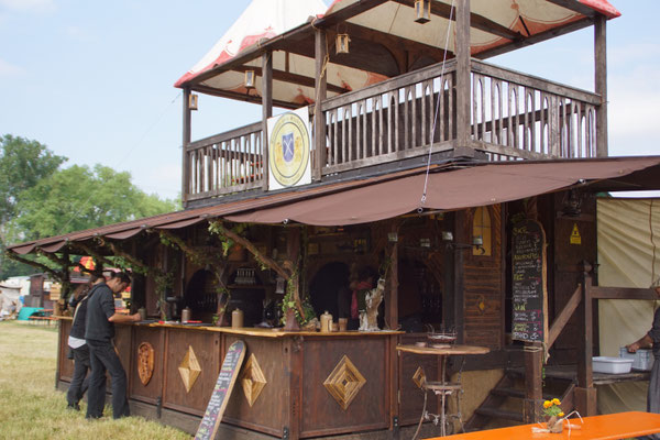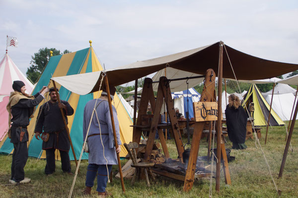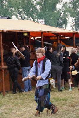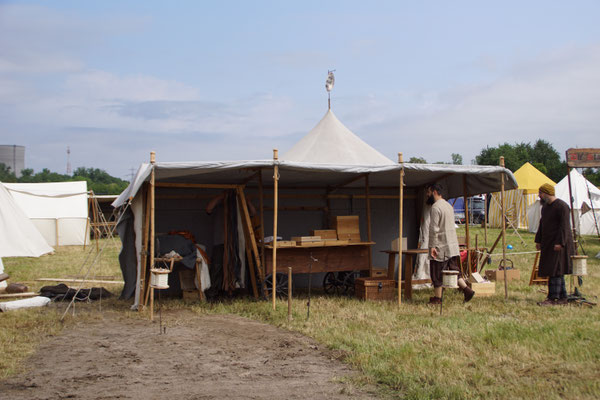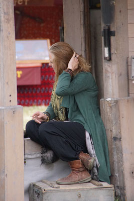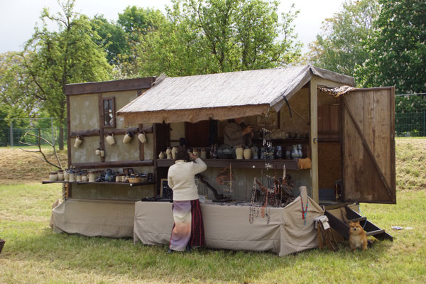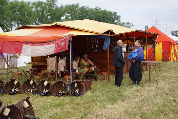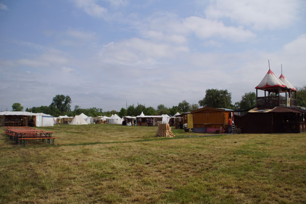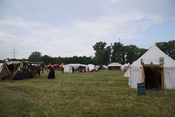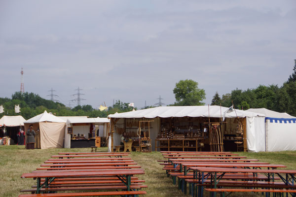 Die städtischen Arbeiter haben vor dem Aufbau die gröbsten Löcher eingeebnet aber manche doch übersehen und so legte sich manch Lagernder oder Besucher mal schnell aufs Ohr und der Begriff " Fliegender Händler"